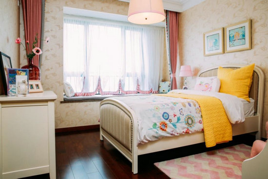 為契合女孩氣質(zhì),兒童房選擇純白底色,加以柔嫩粉與加州黃的床品、飾品,令小空間明亮且開闊,為孩子打造繽紛成長世界。