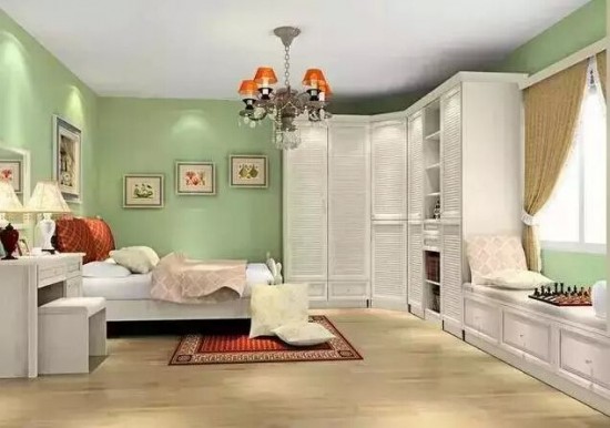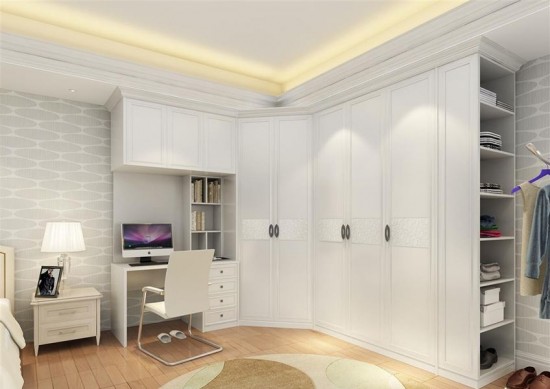 臥室墻壁轉角屬于死角,通常很難被利用,然而轉角衣柜卻能讓這個死角空間重新利用起來,大大增加了空間利用率。