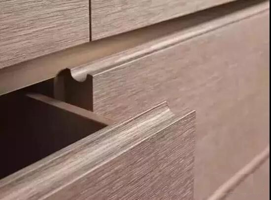 這兩種方式都是時下比較流行的做法,不需要安裝明裝拉手,只要將相應的五金配件裝在柜門的背面,采用按壓的方式自動開啟、關閉就可以了。