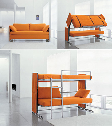 沙發(fā)和床糾纏不清的設計的確是不少,但是之前聽到的那些,無論如何的變換,都始終是從沙發(fā)變成一個床,這一次的這個大黃蜂就更牛一些,可以變成雙層床!