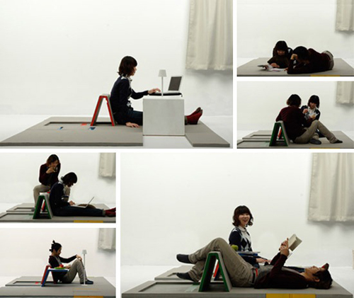 Land Peel是日本一個(gè)家具工業(yè)設(shè)計(jì)專業(yè)的學(xué)生shin yamashita的作品,一套可以折疊組合出不同功能家具的地墊。通常時(shí)候,它像地毯一樣躺平在地上,你幾乎感覺(jué)不到它的存在。