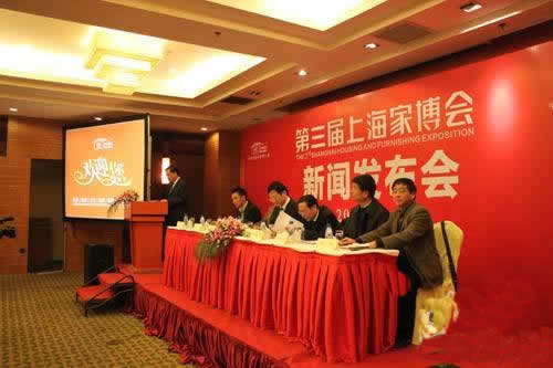 2010年12月7日,“第三屆上海家博會”新聞發(fā)布會在光大國際大酒店隆重舉行,上海商務(wù)委貿(mào)促處處長蔣雪根、上海裝飾裝修行業(yè)協(xié)會常務(wù)副秘書長郟祥均、上海家博會組委會主任茅萬青、上海市裝飾裝修行業(yè)協(xié)會材料委員會秘書長應(yīng)再揚(yáng)、家博會承辦單位上海華墨展覽服務(wù)有限公司總經(jīng)理王國平等出席了新聞發(fā)布會。另有來自上海市前30強(qiáng)知名家裝公司、200多家品牌建材家居企業(yè)、數(shù)十家行業(yè)權(quán)威媒體的300多名代表參加了新聞發(fā)布會。