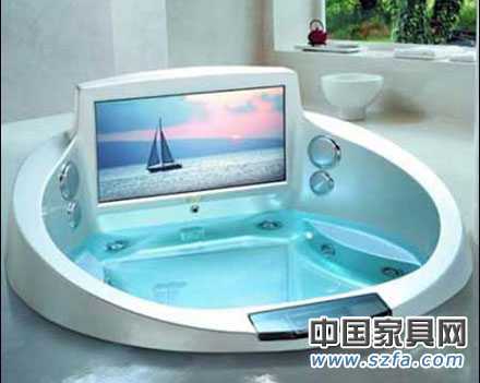 喜歡享受生活的人,沐浴也是一種情趣。很多人會(huì)在自己的浴室里安裝一臺(tái)大電視,這樣就可以泡澡、娛樂(lè)兩不誤。但是,如果家里的衛(wèi)生間不夠大呢?國(guó)外一家潔具生產(chǎn)商推出了一款自帶電視的水流按摩浴缸。這款浴缸嵌有一部43英寸的高清晰平板電視,以及相當(dāng)不錯(cuò)的音響系統(tǒng),用戶可以使用遙控器方便地選擇電視頻道。不過(guò),這款浴缸售價(jià)不菲——能花3.2萬(wàn)美元(約合人民幣26萬(wàn)元)買(mǎi)一個(gè)浴缸的客戶,家里估計(jì)也有一個(gè)足夠放一臺(tái)大電視的浴室了。