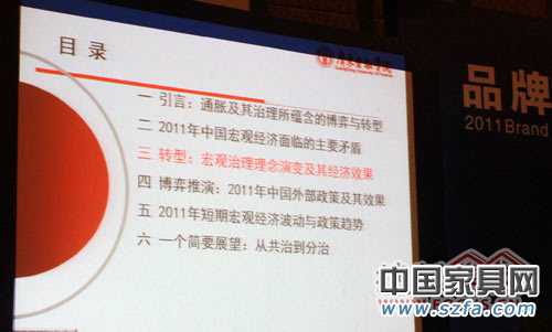 第三個(gè),轉(zhuǎn)型。無論是十二五規(guī)劃,還是中央經(jīng)濟(jì)工作會(huì)議都堅(jiān)定提出一個(gè)觀點(diǎn),轉(zhuǎn)變經(jīng)濟(jì)發(fā)展方式,我們也做了相應(yīng)分析,以家居 行業(yè)作為一個(gè)傳統(tǒng)性的行業(yè)而言,所面臨的轉(zhuǎn)型是什么,能不能從本輪轉(zhuǎn)型當(dāng)中獲利,這是兩個(gè)層次的問題。第一個(gè)我的建議應(yīng)該著力提高勞 動(dòng)生產(chǎn)率,提高價(jià)格附加,提高技術(shù)水平,當(dāng)然也要獲得我們自己的品牌。只有如此,才能夠在未來競(jìng)爭當(dāng)中占據(jù)一席之地。第二個(gè)就是如果 在未來,我們面臨如此激烈市場(chǎng)競(jìng)爭態(tài)勢(shì),我相信一定會(huì)有相應(yīng)的產(chǎn)業(yè)整合。換言之,經(jīng)濟(jì)發(fā)展方式轉(zhuǎn)變可能對(duì)我們的行業(yè)來說,意味著優(yōu)勝 劣汰的開始。
