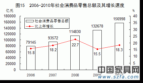 在限額以上企業(yè)商品零售額中,汽車類零售額比上年增長34.8%,糧油類增長27.9%,肉禽蛋類增長21.7%,服裝類增長25.8%,日用品類增長25.1%,文化辦公用品類增長23.5%,通訊器材類增長21.8%,化妝品類增長16.6%,金銀珠寶類增長46.0%,中西藥品類增長23.5%,家用電器和音像器材類增長27.7%,家具類增長37.2%,建筑及裝潢材料類增長32.3%。