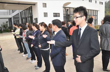 清晨,高超老師帶領(lǐng)學(xué)員們開展晨會,各組學(xué)員進行風(fēng)采展示,禮儀五部曲訓(xùn)練。