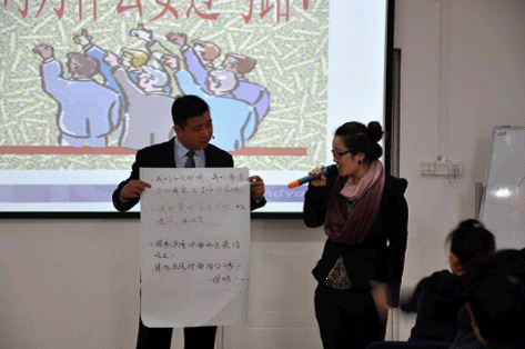 課堂上針對一些重點問題進行小組的討論,并且進行成果展示。與學(xué)員進行面對面的交流與互動,加深學(xué)員對課程知識的難點與重點的理解。此外,以小組競賽的形式開展教學(xué),增強學(xué)員的積極性與集體榮譽感。為了提起學(xué)員的精神狀態(tài),老師總會在課前幾分鐘時間組織大家玩小游戲,或者教大家跳一些簡單的健身操。學(xué)員們均紛紛參與其中,歡聲笑語,樂也融融?。?br />