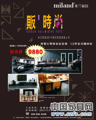 家是心靈的港灣,可很多時候當您拖著疲倦的身軀面對十年如一日的家居生活時,您是不是有種想要“逃離”的沖動?2011年,米蘭家居“販時尚”活動將帶給您全新生活……