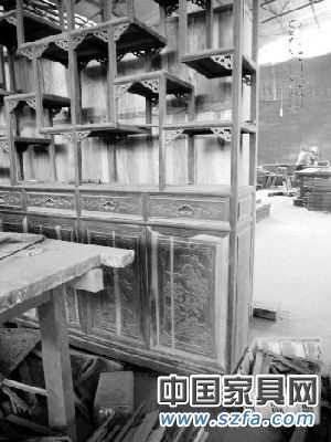 隨后,記者來(lái)到緊挨著鋸板廠的一些紅木家具廠。中午也沒(méi)休息,幾乎每家家具廠都發(fā)出刺耳的鋸板聲。