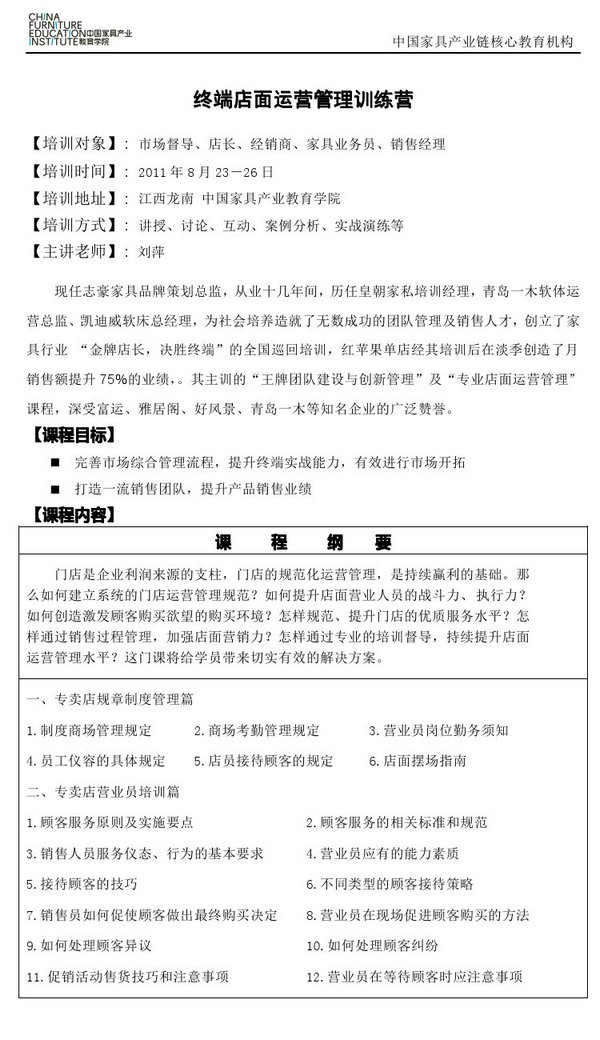 核心提示:2011年8月終端店面運營管理訓(xùn)練營圖片,多多學(xué)習(xí)不斷提高自己,才能把握家具行業(yè)未來的走勢和趨向。