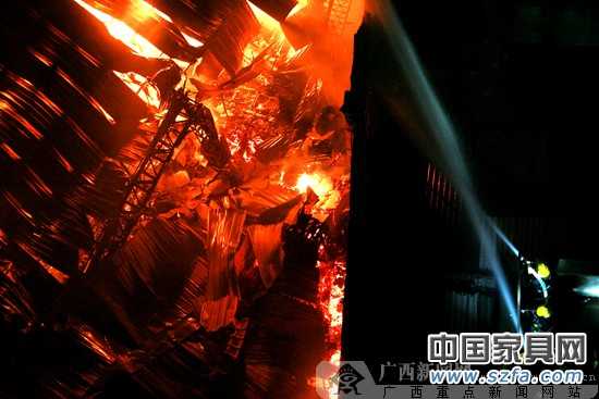 昨晚11時左右,位于柳州市潭中西路的桂中精品家具城突發(fā)火災(zāi)。該家具城室內(nèi)面積超過1萬平方米,大火在短時間內(nèi)迅速蔓延,過火區(qū)域天花板整體坍塌,過火面積至少達1000平方米。柳州市消防支隊幾乎出動所有消防力量,共計10個中隊、28輛消防車趕赴火場,截至今日凌晨1時,滅火戰(zhàn)斗仍在繼續(xù)。據(jù)守夜人員稱,火災(zāi)為天花板電線迸發(fā)火星,墜落后迅速引燃沙發(fā)、床墊等易燃家具。