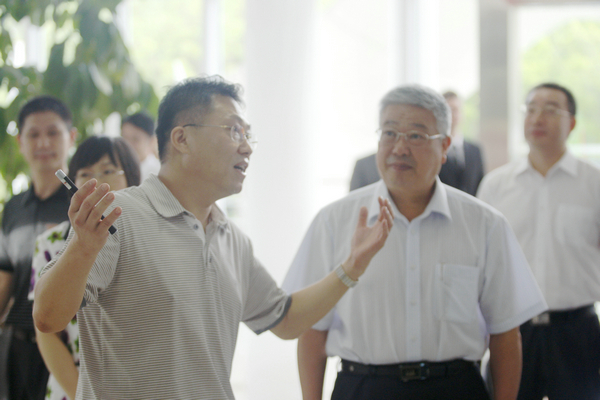 侯克鵬向李立國(guó)介紹辦公樓的環(huán)保設(shè)計(jì)理念
