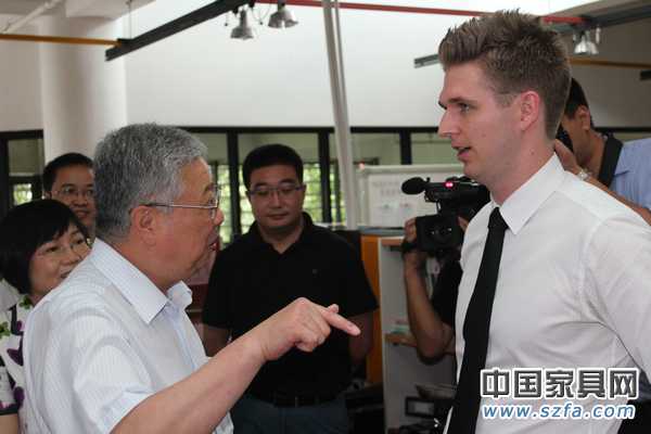 侯克鵬向李立國(guó)介紹中國(guó)家具教育學(xué)院