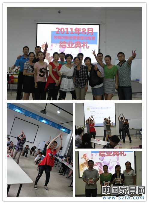 到了最后一晚的結(jié)業(yè)典禮,手捧結(jié)業(yè)證書的那一刻,大家內(nèi)心十分激動,有的人,甚至還濕潤了眼眶,多少年沒有再進入學(xué)校了啊,多少年沒有同窗共度,秉燭夜談了啊,相信這幾天跟中國家具產(chǎn)業(yè)教育學(xué)院的美麗約會,將會是他們一生的回憶,未來,將是我們攜手共建的未來,愿友誼地久天長,愿大家都飛得更高!