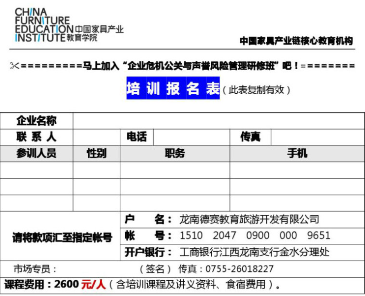 【培訓(xùn)地址】: 江西贛州龍南 中國家具產(chǎn)業(yè)教育學(xué)院