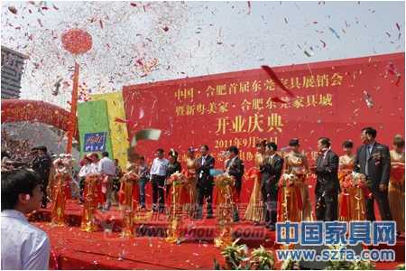 9月25日,2011合肥首屆東莞家具展銷會暨新粵美家合肥東莞家具城開業(yè)慶典在合肥長江批發(fā)市場門前廣場隆重舉行。作為皖粵經(jīng)貿(mào)合作重點簽約項目,合肥東莞家具城的正式開業(yè)運營,標志著首開家具行業(yè)先河的“前店后廠”直營銷售模式的大幕已經(jīng)拉啟,也邁開了東莞品牌家具布局中部的關鍵一步。據(jù)悉,為期13天的展銷會上,數(shù)百家參展商除帶來千余件驚爆特惠品牌家具以外,還推出力度空前的優(yōu)惠活動,開啟家具優(yōu)惠國慶最長假。