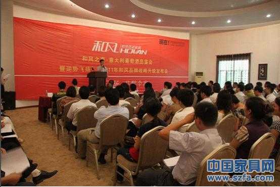 9月3日,和風(fēng)家具舉行了2011年和風(fēng)品牌戰(zhàn)略升級發(fā)布會,來自全國各地的經(jīng)銷商、賣場代表、各大主流媒體及廣東省家具商會的領(lǐng)導(dǎo)出席了活動(dòng)。