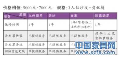 近日,京華家居記者以消費(fèi)者的身份對市場上的布藝沙發(fā)售后服務(wù)進(jìn)行了一次調(diào)查。記者選取了三檔價(jià)格的布藝沙發(fā),對處于同一價(jià)格區(qū)間的4款布藝沙發(fā)品牌進(jìn)行了橫向比對,以保修時(shí)間、是否提供沙發(fā)罩拆裝服務(wù)、是否提供沙發(fā)罩清洗服務(wù)以及充絨服務(wù)這四項(xiàng)作為比較標(biāo)準(zhǔn)。記者在調(diào)查中發(fā)現(xiàn),不同的品牌提供的保修服務(wù)期限差異很大,大部分都是按照家具“三包”標(biāo)準(zhǔn)提供一年保修,也有部分廠商對主要部件如木框架、坐墊等提供15年以上的保修時(shí)間。而像清洗、拆裝服務(wù),不同品牌提供的免費(fèi)、收費(fèi)服務(wù)標(biāo)準(zhǔn)差異也很大。相對而言,價(jià)位越高的沙發(fā)提供的售后服務(wù)越完善,但也有一些價(jià)格不低的品牌提供的服務(wù)乏善可陳。
