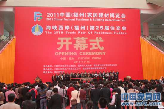 由中國(guó)對(duì)外貿(mào)易中心(集團(tuán))、福州市人民政府、福建省對(duì)外貿(mào)易經(jīng)濟(jì)合作廳主辦,中國(guó)對(duì)外貿(mào)易廣州展覽總公司、福建薈源國(guó)際展覽有限公司承辦,福州日?qǐng)?bào)社聯(lián)合承辦的2011中國(guó)(福州)家居建材博覽會(huì)·海峽西岸(福州)第25屆住交會(huì),今日在福州海峽國(guó)際會(huì)展中心隆重開幕。