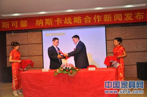 2012年1月11日,作為江蘇家具行業(yè)最具規(guī)模和創(chuàng)新力家具企業(yè)江蘇斯可馨家具股份有限公司正式牽手蘇州第二大沙發(fā)品牌納斯卡,實現(xiàn)優(yōu)勢互補(bǔ)、強(qiáng)強(qiáng)聯(lián)合,共同打造中國軟體家具布藝沙發(fā)第一品牌。