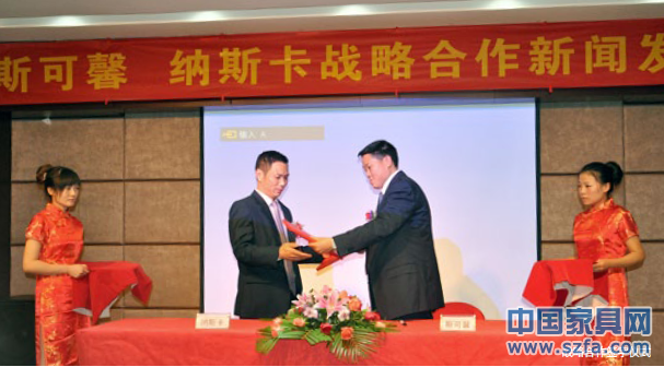 2012年1月11日,作為江蘇家具行業(yè)最具規(guī)模和創(chuàng)新力家具企 業(yè)江蘇斯可馨家具股份有限公司正式牽手蘇州第二大沙發(fā)品牌納斯 卡,實(shí)現(xiàn)優(yōu)勢互補(bǔ)、強(qiáng)強(qiáng)聯(lián)合,共同打造中國軟體家具布藝沙發(fā)第一 品牌。