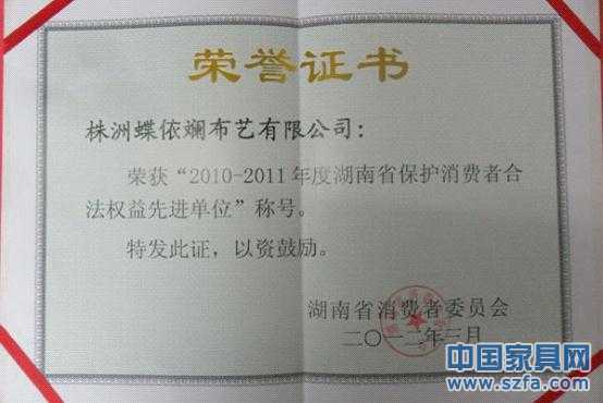 蝶依斕榮獲2010—2011年度湖南省保護(hù)消費者合法權(quán)益先進(jìn)單位