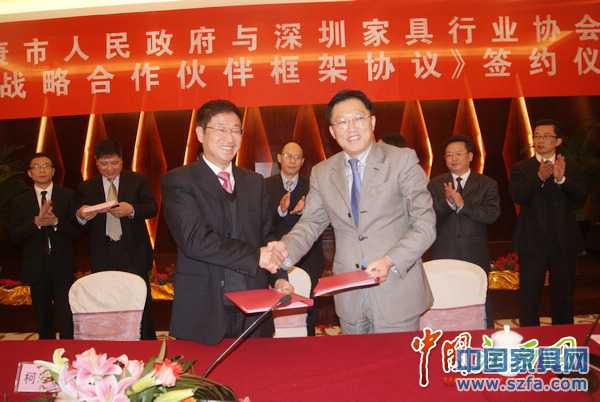 市長柯巖松與深圳家具協(xié)會會長侯克鵬分別代表我市和深圳家具協(xié)會簽訂《家具戰(zhàn)略合作伙伴框架協(xié)議》,協(xié)議約定雙方將在產(chǎn)業(yè)規(guī)劃、品牌建設(shè)、企業(yè)管理、市場建設(shè)與管理等方面進(jìn)行廣泛合作。