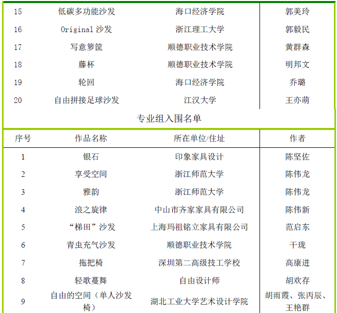 以下是本屆設(shè)計大賽院校組和專業(yè)組的入圍名單(按照參賽作者拼音字母排序):