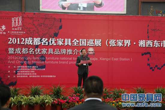 4月7日,由成都市經(jīng)濟(jì)與信息化委員會(huì)、成都市扶持名優(yōu)產(chǎn)品領(lǐng)導(dǎo)小組辦公室主辦,四川省家具進(jìn)出口商會(huì)承辦的“成都名優(yōu)家具全國(guó)巡展”在湖南省張家界市慈利縣湘西東市家具大市場(chǎng)拉開帷幕,成都市經(jīng)濟(jì)與信息化委員會(huì)副主任雷鳴驚,成都市經(jīng)信委扶持名優(yōu)產(chǎn)品領(lǐng)導(dǎo)小組副主任明亮,四川省家具進(jìn)出口商會(huì)常務(wù)副會(huì)長(zhǎng)、秘書長(zhǎng)榮煜偉,慈利縣縣委常委、副縣長(zhǎng)劉坤明及先驅(qū)、意凡、好迪等近百家四川品牌家具企業(yè)負(fù)責(zé)人參與開幕儀式。
