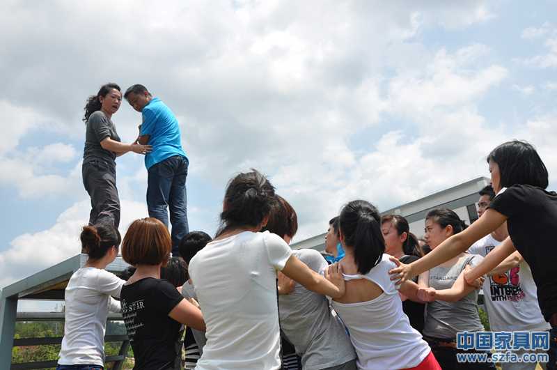 這個項目,是很多企業(yè)進行團隊凝聚力訓練的必選項目。手被捆綁后,從1.5米的高臺上倒下,下落后被同隊隊員接住。這個游戲讓學員們明白既要信任自己,也要信任他人,互相信任是達成目標的基礎(chǔ)。