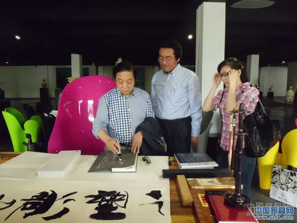 由于時間關(guān)系,韓先生一行只參觀了兩個展廳,意猶未盡的韓先生見書案上準(zhǔn)備好了筆墨紙硯,走上前,提筆揮毫,為坪山雕塑藝術(shù)創(chuàng)意園題寫了園名。