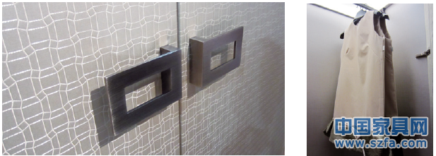 意大利頂級(jí)軟床品牌Flou一直致力于打造睡眠空間的整體解決方案,今年的新產(chǎn)品主題汲取了東方映像的元素。而這些類似窗棱格的圖案不但用到了床品上,更在柜面板上得到應(yīng)用。此做法在國內(nèi)已經(jīng)被喜臨門等知名品牌運(yùn)用,但Flou為了表現(xiàn)衣柜表面面料的獨(dú)特性和與床體的呼應(yīng),將這些面料制作成連衣裙直接置于衣柜內(nèi),給參展者更為直觀的感受。