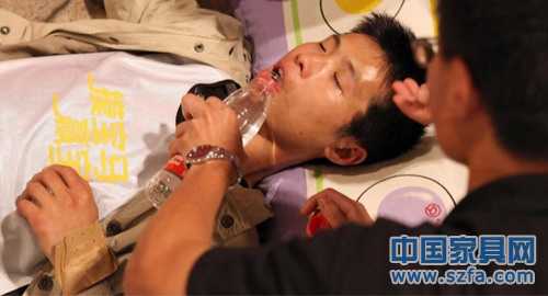 體力不支的參賽者現(xiàn)場抓緊15分鐘的休息時間休息
