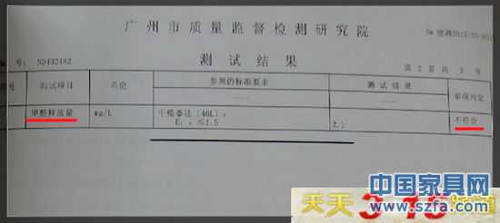 (廣州質(zhì)檢院的檢測報告顯示“甲醛超標(biāo)” 供圖:邱小姐)