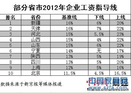 10省市2012年企業(yè)工資指導線一覽