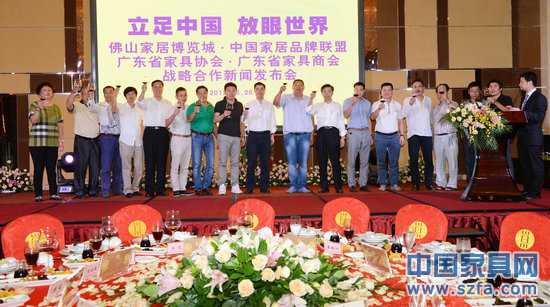 2012年6月26日下午,佛山家居博覽城隆重舉行了“立足中國,放眼世界——佛山家居博覽城•中國家居品牌聯(lián)盟•廣東省家具協(xié)會•廣東省家具商會戰(zhàn)略合作新聞發(fā)布會”。中國家具協(xié)會、中國家居品牌聯(lián)盟、廣東省家具協(xié)會、廣東省家具商會、廣東湖北商會家具協(xié)會、四川省家具行業(yè)商會、佛山市家具行業(yè)協(xié)會等30多個(gè)行業(yè)協(xié)會的主要領(lǐng)導(dǎo),以及來自國內(nèi)外知名家具廠商的代表,近1000位嘉賓參加了此次盛會。