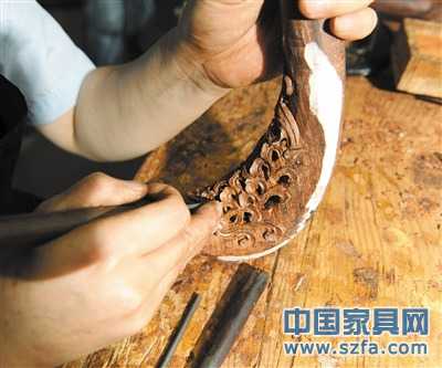 由于海南黃花梨大料基本絕跡,目前均采用一些舊家具老料制作,在元亨利的工廠內(nèi),老工人會經(jīng)過多道工序制作海南黃花梨家具。