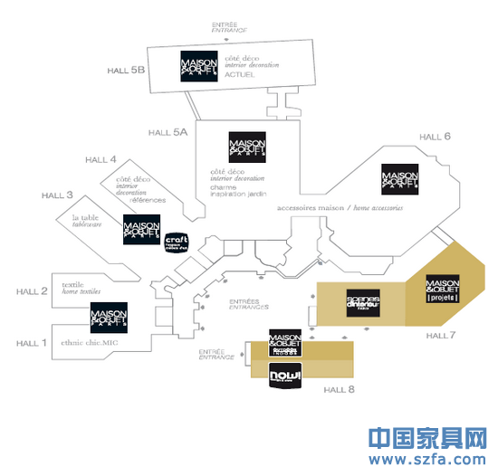 Halls 1, 2, 3, 4, 5A, 5B, 6, 7, 8.