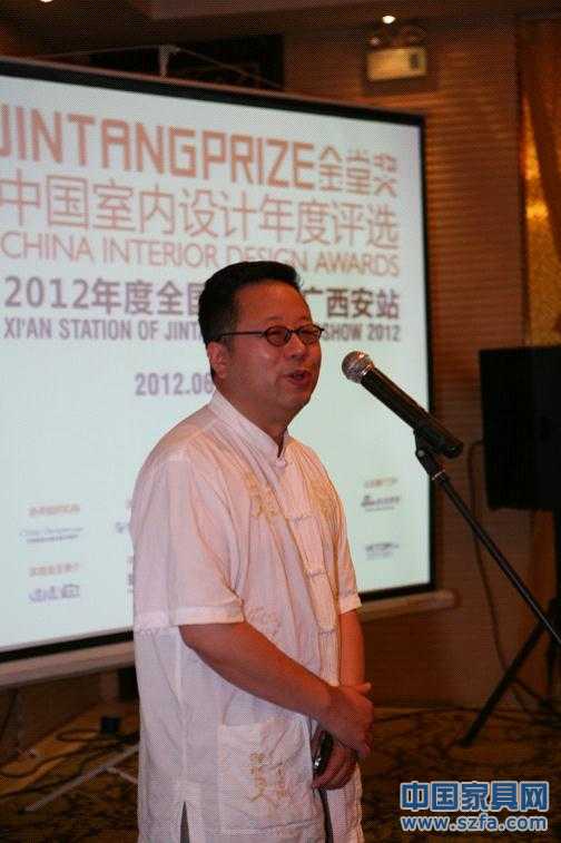 當(dāng)?shù)卦O(shè)計(jì)師代表、中國(guó)建筑學(xué)會(huì)室內(nèi)設(shè)計(jì)分會(huì)第五專業(yè)委員會(huì)秘書(shū)長(zhǎng)習(xí)晉為活動(dòng)致辭。習(xí)晉說(shuō),“這是我第二次參加金堂獎(jiǎng)的活動(dòng),對(duì)于去年金堂獎(jiǎng)在西安舉辦的‘金堂獎(jiǎng)2010年度獲獎(jiǎng)作品全國(guó)巡展暨2011西安設(shè)計(jì)精英交流會(huì)’活動(dòng),至今印象仍然深刻。金堂獎(jiǎng)再次來(lái)到西安,我們表示由衷的歡迎和感謝,因?yàn)?,金堂?jiǎng)把中國(guó)乃至世界最新的資訊,帶給我們西安設(shè)計(jì)師,帶來(lái)一場(chǎng)設(shè)計(jì)界的饕餮盛宴。作為一個(gè)公益性、公正性、獨(dú)立性、服務(wù)性的獎(jiǎng)項(xiàng),金堂獎(jiǎng)體現(xiàn)一個(gè)行業(yè)的責(zé)任和擔(dān)當(dāng),為西安乃至全國(guó)設(shè)計(jì)師提供一個(gè)展現(xiàn)自己才能和交流的航母平臺(tái)。”