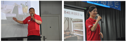 產(chǎn)品知識PK賽場上,學(xué)員們突破自己,站上了講臺向全場150名“顧客”介紹產(chǎn)品,許多學(xué)員剛上臺的時候聲音在戰(zhàn)抖,一度遇到語塞,腦袋空白,在臺下隊(duì)友們、領(lǐng)導(dǎo)們及老師的鼓勵之下,他們克服了內(nèi)心的恐懼,越來越大膽地完成了整個10分鐘的產(chǎn)品解說,最終,8隊(duì)的黃翰文同學(xué)獲得了最高分,他的解說贏得滿堂彩,他也成為了同學(xué)們學(xué)習(xí)的榜樣。