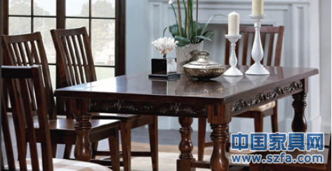 北美之家將這種莨苕葉紋飾運(yùn)用在桌邊沿,用來寓意吉祥如意、祈求平安,工藝精湛、形象逼真的傳統(tǒng)手工雕刻卻是用機(jī)械加工而成,運(yùn)用這種古典裝飾紋樣,使得家具承繼了貴族的大氣雍雅和高貴。
