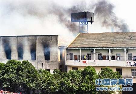 據(jù)介紹,勝華家具公司為兩層瓦鋼結構;樂登威廠房則有三層,一層為木工車間,二層為成品房,三層為沙發(fā)車間?;饎菅杆俾?,兩家廠房都燒了起來,幸運的是當時正在廠內(nèi)上班的近70名工人均安全逃生。