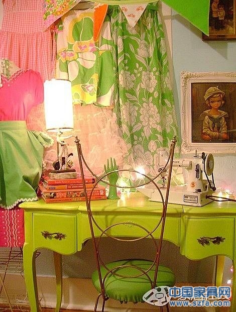 紅紅綠綠扎染的花布,翠綠的桌子和鐵藝的椅子搭配起來(lái)是不是很時(shí)尚呢?看來(lái)家居搭配很重要哦!