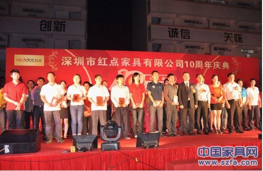 核心提示:金秋十月,一個(gè)收獲輝煌碩果的時(shí)節(jié),深圳市紅點(diǎn)家具有限公司迎來十周年廠慶。自2002年創(chuàng)立以來,紅點(diǎn)已在風(fēng)風(fēng)雨雨中走過十年,十年對(duì)紅點(diǎn)而言,意味著成長(zhǎng),意味著收獲,更意味著榮譽(yù)。紅點(diǎn)十周年之際,將在深圳紅點(diǎn)總部生態(tài)工業(yè)園區(qū)舉辦大型聯(lián)歡晚會(huì)慶典,屆時(shí)所有紅點(diǎn)人將共度這一輝煌時(shí)刻。
