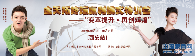 在市場哀鴻遍野之際,為有效幫助身處市場一線的經(jīng)銷商、店長們提升銷售業(yè)績,提振市場信心,輸送正能量,破解經(jīng)營困局,驅(qū)趕行業(yè)寒流,近日(10月30日—11月1日),金天拓家私“變革提升•再創(chuàng)輝煌”2012終端贏利模式特訓(xùn)營在千年古都西安如期啟幕,為經(jīng)銷商、合作伙伴及時(shí)送“碳”,輸送市場正能量,展現(xiàn)了金天拓大品牌有大愛的企業(yè)品質(zhì)。
