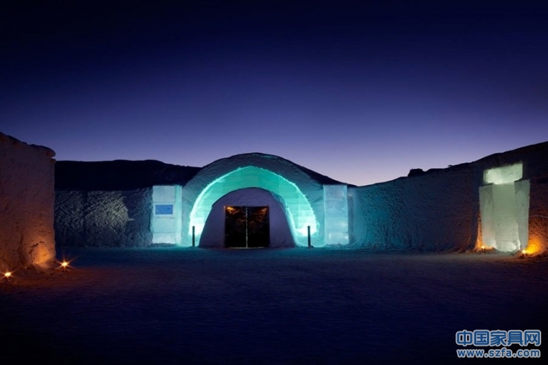 瑞典冰酒店的入口。這座晶瑩剔透的酒店位于尤卡斯耶爾維,最初是22年前的一個設(shè)計項目,現(xiàn)在已成為世界上最著名的酒店之一。
