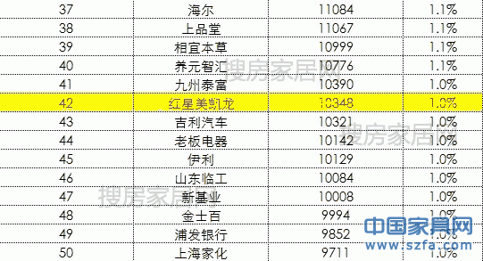 據(jù)搜房家居網(wǎng)了解,在2012年中,家居建材行業(yè)有紅星美凱龍(6808萬)、圣象(6009萬)、莊盛家俱(即顧家家居、4820萬)三家企業(yè)中標央視黃金資源廣告,此三家企業(yè)占2012年央視黃金資源廣告總比約為1.24%。而在昨晚結(jié)束的中央電視臺2013年黃金資源廣告招標中,家居建材行業(yè)僅紅星美凱龍一家以1.0348億中標,行業(yè)占比下跌至0.8%。
