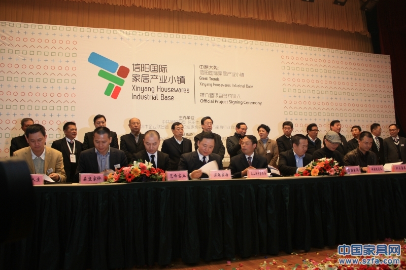 奠基儀式結(jié)束后,信陽國際家居小鎮(zhèn)推介暨項(xiàng)目揭牌簽約儀式啟動(dòng),深企發(fā)和入住企業(yè)簽約,深聯(lián)發(fā)和金融機(jī)構(gòu)進(jìn)行簽約。會(huì)上,中國家協(xié)理事長(zhǎng)朱長(zhǎng)嶺,深圳市原政協(xié)主席、深企聯(lián)執(zhí)行執(zhí)行會(huì)長(zhǎng)吳井田,河南深聯(lián)家居產(chǎn)業(yè)發(fā)展股份有限公司總經(jīng)理郭泉鑫等分別發(fā)表了講話。