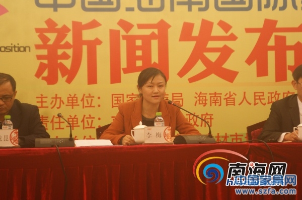 屯昌縣副縣長(zhǎng)李梅在發(fā)布會(huì)上推介家居博覽會(huì)