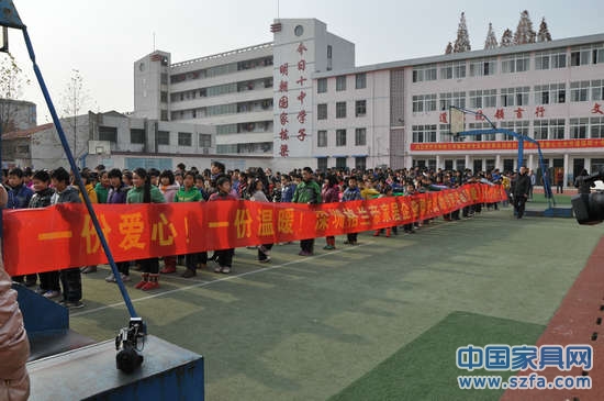 信陽十中校長(zhǎng)商信淮在發(fā)言中表示,他對(duì)深圳格蘭帝家居企業(yè)及董事長(zhǎng)邵雷在企業(yè)重新啟動(dòng)就積極參與愛心事業(yè)非常感動(dòng),感謝格蘭帝董事長(zhǎng)邵雷和信陽經(jīng)銷商徐總經(jīng)理,祝好人一生平安。捐贈(zèng)現(xiàn)場(chǎng),信陽十中300名貧困學(xué)生領(lǐng)取了由深圳格蘭帝工作人員發(fā)放的屬于自己的高環(huán)保超棉襖羽絨服、衣褲、書包及其他物品,孩子們的臉上綻放了燦爛童真的笑容?,F(xiàn)場(chǎng)氣氛非常熱烈,雖然天氣有點(diǎn)冷,但有愛的暖流涌入人心,真正體現(xiàn)萬水千山總是情,人間處處有愛心。教體局副局長(zhǎng)彭金輝贊格蘭帝家居富有愛心,富有社會(huì)使命感和責(zé)任感。